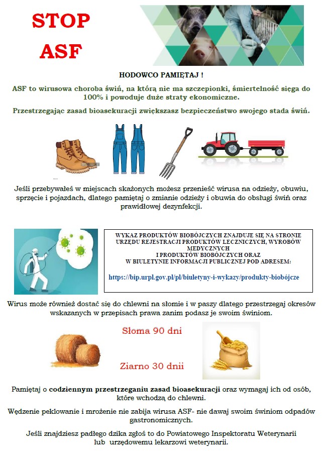 KOMUNIKAT POWIATOWEGO LEKARZA WETERYNARII w Opolu Lubelskim dotyczące bioasekuracji ASF