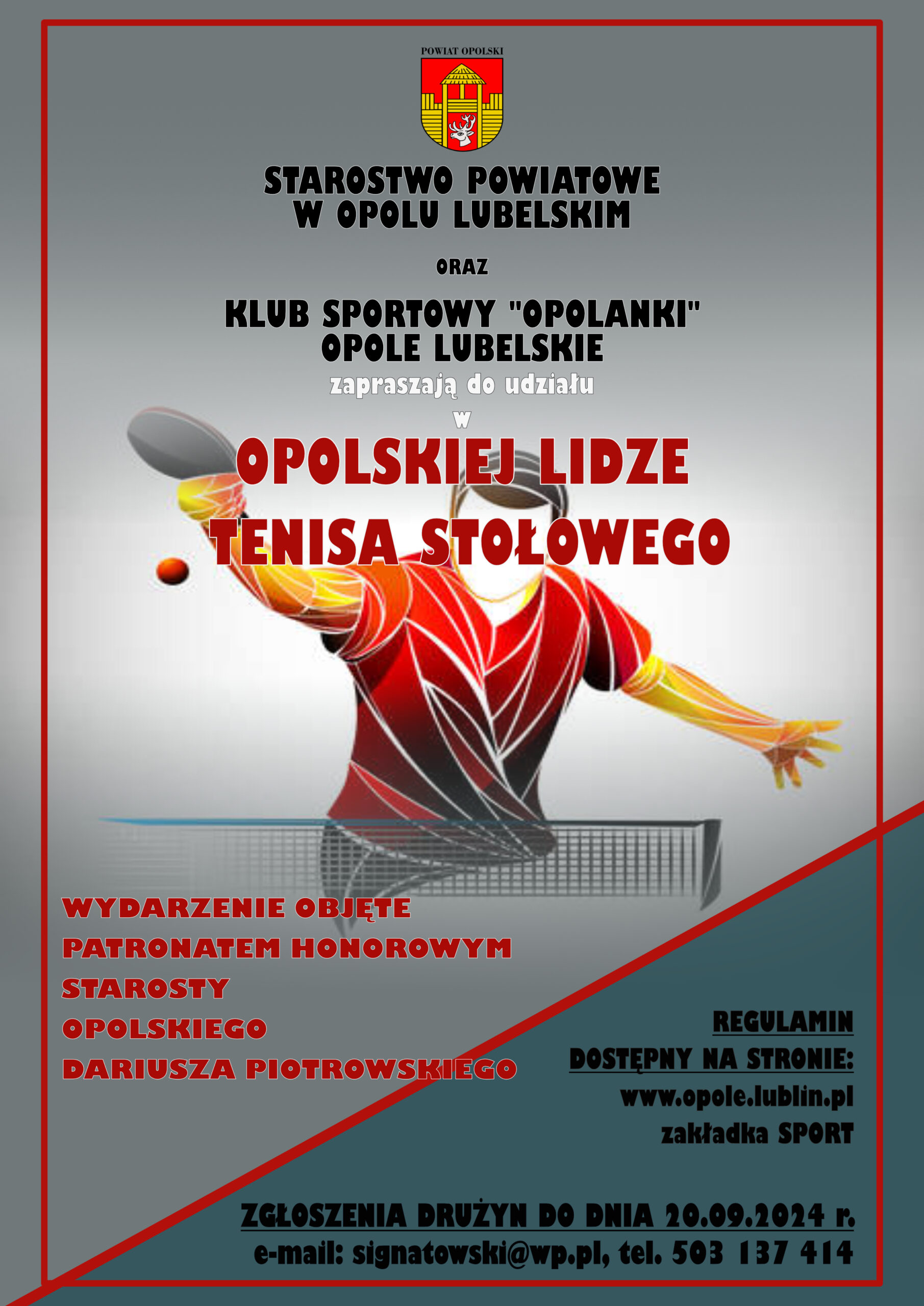 regulamin Opolskiej Ligii Tenisa Stołowego dn. 11.07.2024r