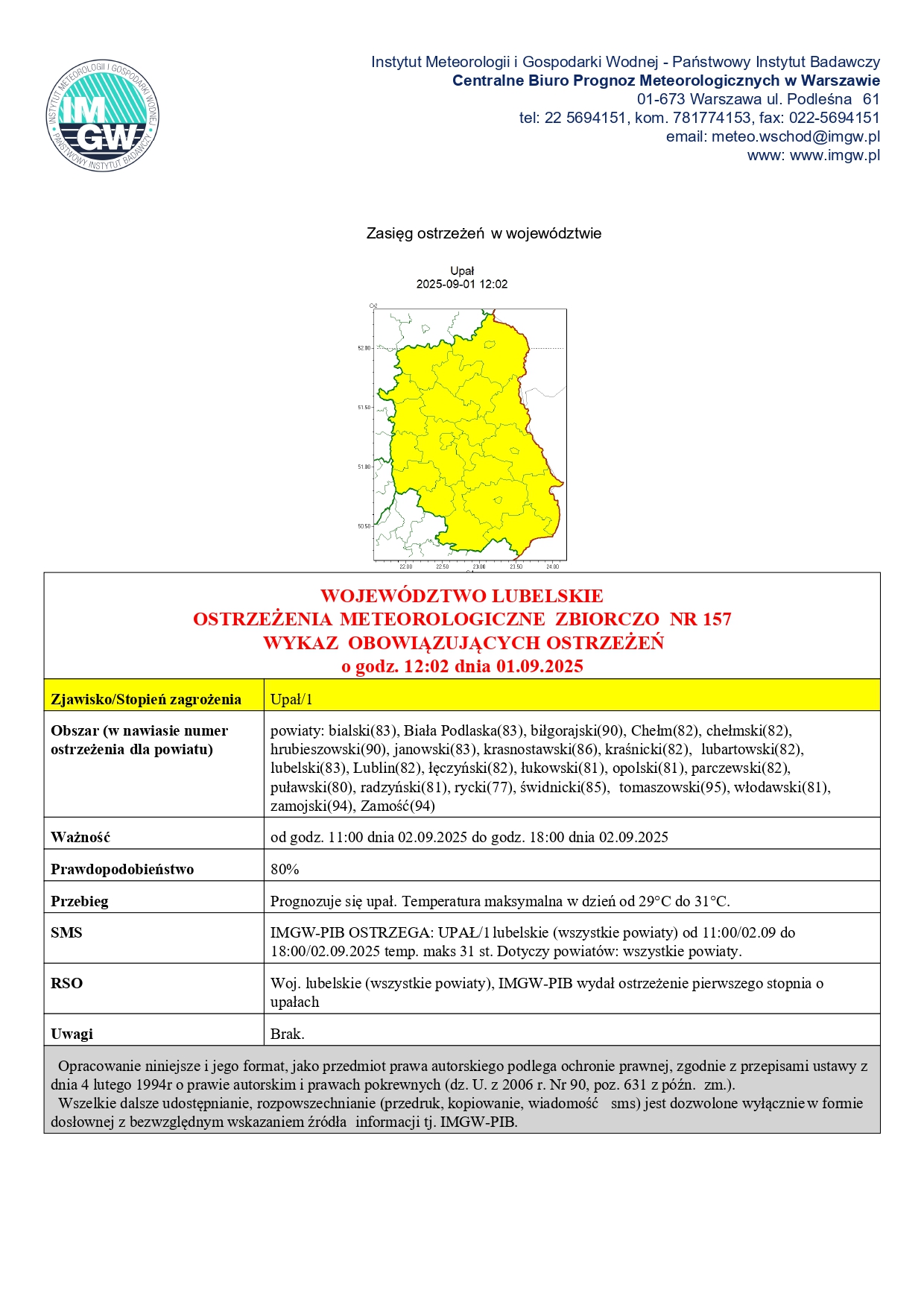Ostrzeżenie meteorologiczne IMGW-PIB obowiązujące w województwie lubelskim