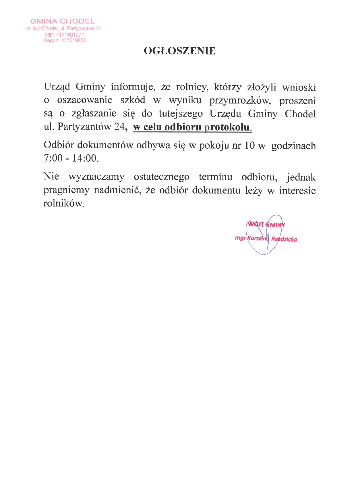 Wybory uzupełniające do Rady Gminy Chodel 2019 r.